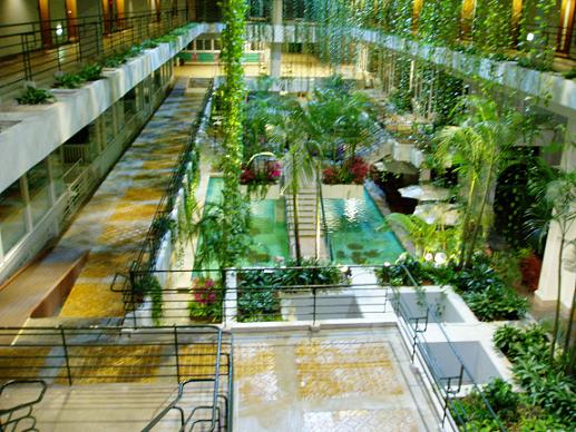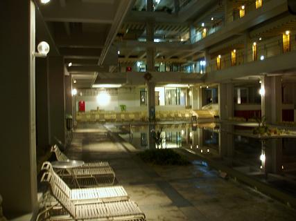ホテルの中にはプールもありました。 ここは屋内のように見えて屋外なので 海の音が聞こえてきます。 イスにねそべりながら電話してました。 |